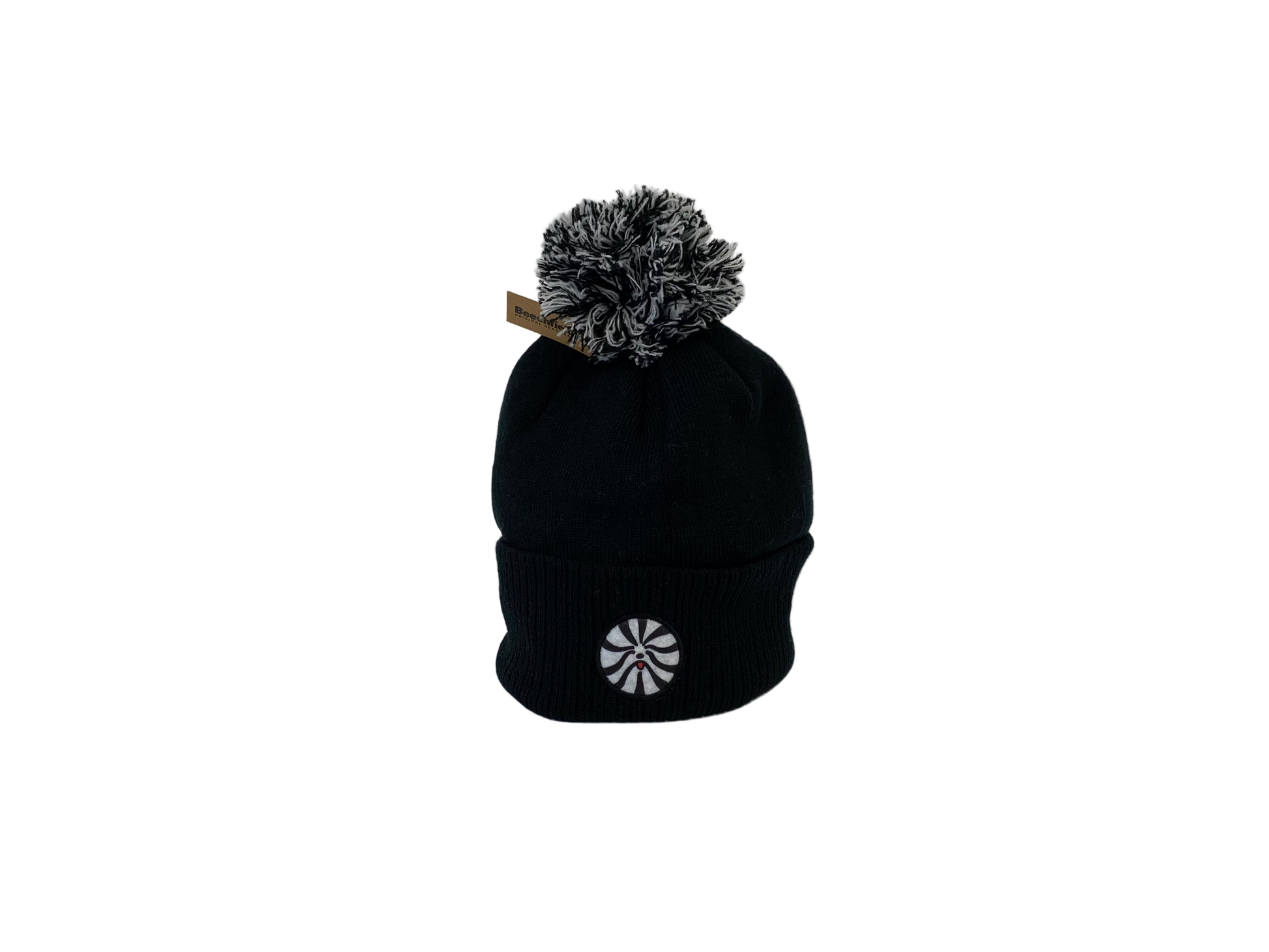 Soft, cozy knit with a playful pom-pom, available in classic black or white.